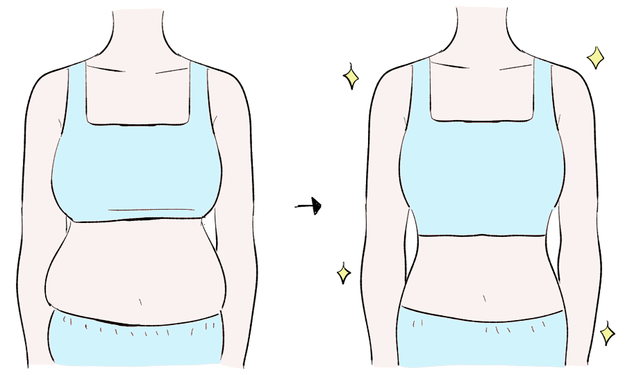 体の表面を覆っているため、その量や張り具合が外形(見た目)を決めます。