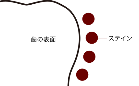 このステインが歯のくすんだ色の原因です。